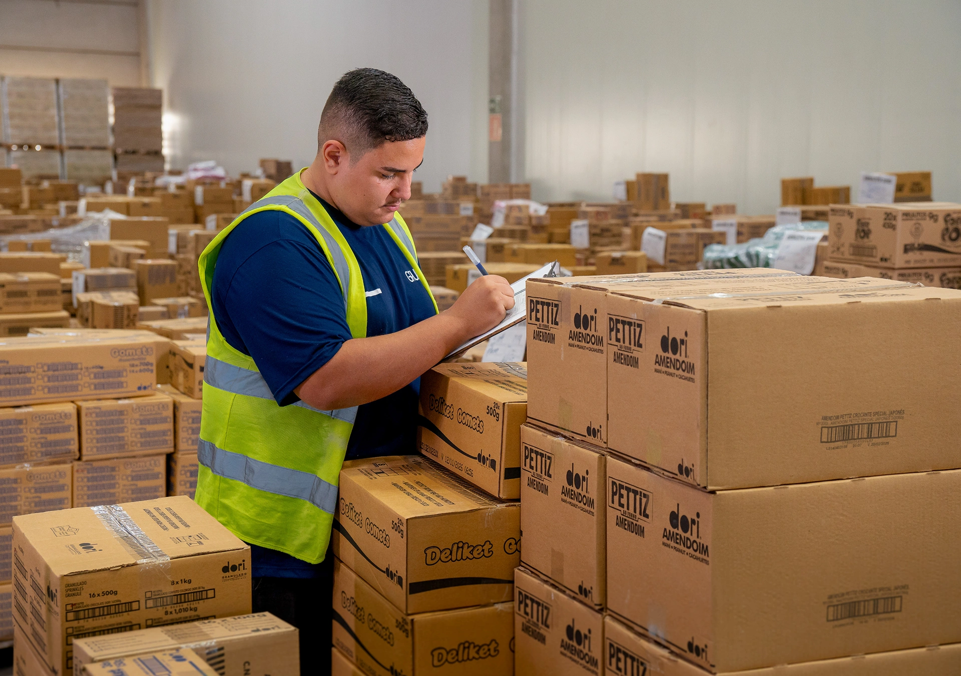 Recebimento de mercadorias com conferência e organização imediata no CD, assegurando integridade e controle total dos volumes recebidos.