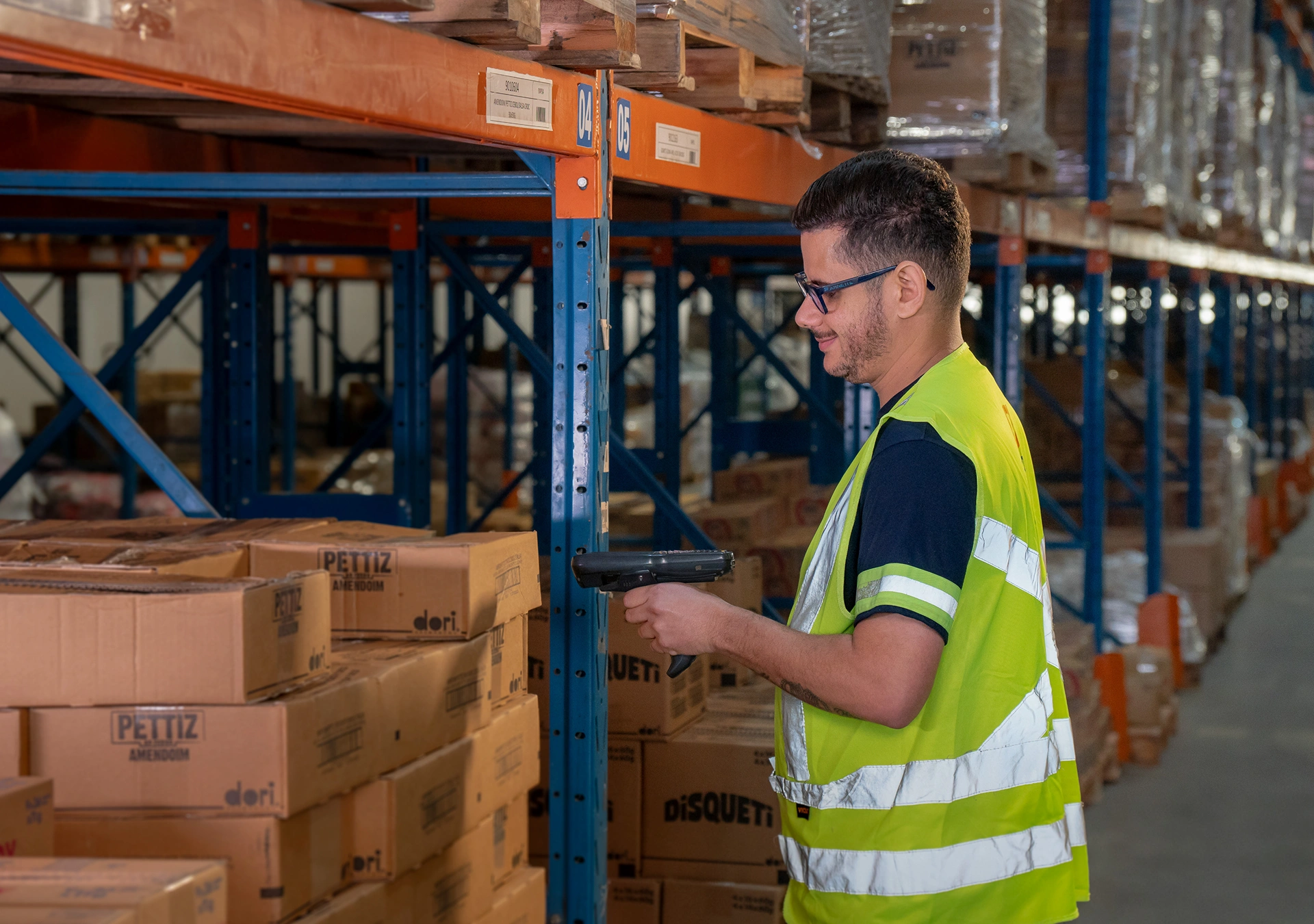 Aplicação de etiquetas conforme as exigências de cada cliente ou produto, facilitando a identificação, controle e organização dos itens armazenados.